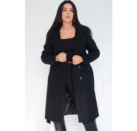 Płaszcz wełniany z paskiem SOFIA - czarny