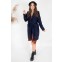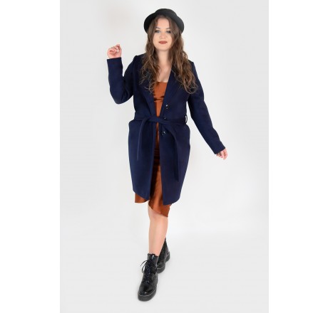 Płaszcz jesienno - zimowy uszyty z tkaniny o 20% zawartości alpaki, o lekko taliowanym kroju. Wykończony w środku podszewką. Zapinany na trzy guziki i wiązany paskiem. Posiada dwie kieszenie.